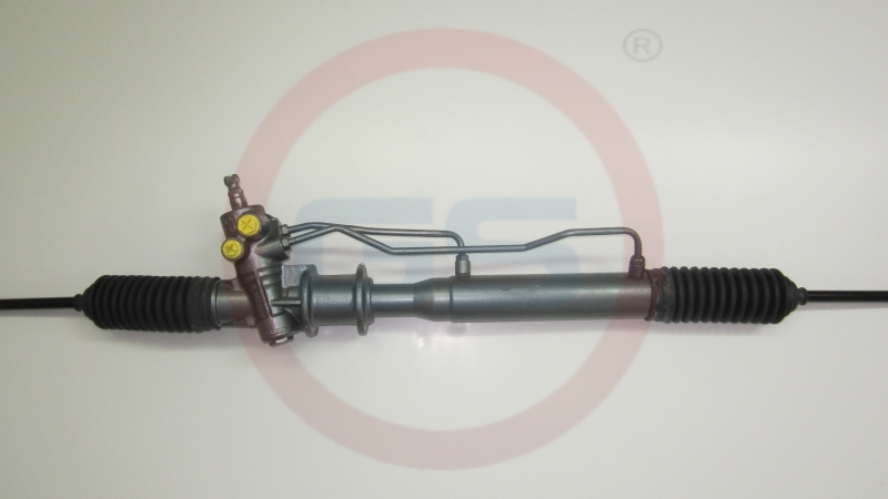 Гидравлическая рулевая рейка с шлицевым штоком, не разборным корпусом золотника, креплением под хомут и вертикальным положением штуцеров гидроцилиндра. Koyo